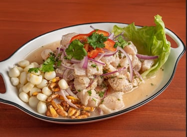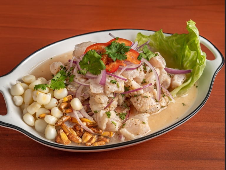 Enjoy our fresh ceviche, a traditional Peruvian delight.